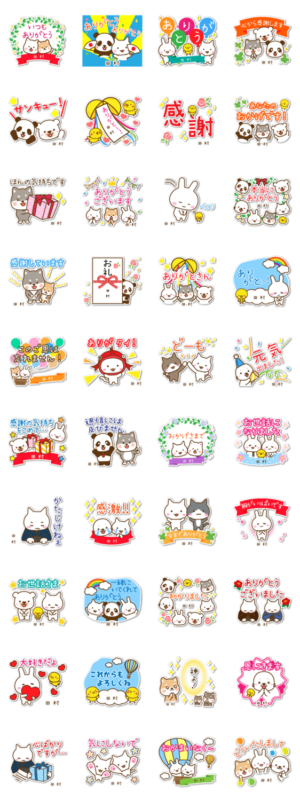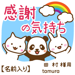 田村/たむら様専用!感謝の気持ち動物編!お名前入り!友達や家族や恋人に日常の感謝をどうぶつ達が挨拶♪ねこ/いぬ/うさぎ/しろくま/あざらし/とり/ひよこ/熊猫/柴犬/白兎お名前入りスタンプ専用★アイシスデザイン株式会社 より発売