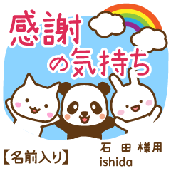 石田/いしだ様専用!感謝の気持ち動物編!お名前入り!友達や家族や恋人に日常の感謝をどうぶつ達が挨拶♪ねこ/いぬ/うさぎ/しろくま/あざらし/とり/ひよこ/熊猫/柴犬/白兎お名前入りスタンプ専用★アイシスデザイン株式会社 より発売