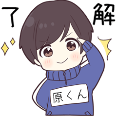 原くん専用のスタンプ第2弾です。ジャージのゼッケンに「原くん」の名前が入っています。