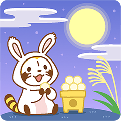 秋を楽しんでいるラスカルのスタンプです。かわいらしい仕草のスタンプをラインに飾って癒されましょう!