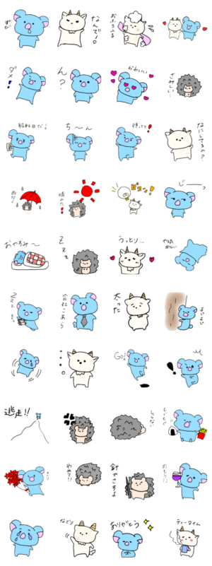 こあらとやぎとはりねずみのスタンプです。やぎやぎ より発売