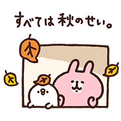 ピスケとうさぎが秋をエンジョイするスタンプです。