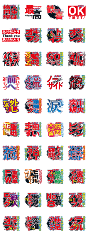 スポニチスタンプ第2弾!!W杯で盛り上がるラグビーの観戦のお供に!グラウンドを駆け回るラガーマンに!情熱的な日常会話に!?このスタンプでお楽しみください。