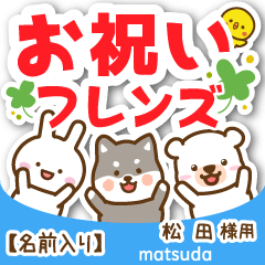 松田/まつだ様専用★お祝い動物フレンズ名前入り!ねこ,犬,白兎,熊猫等のイベント挨拶!誕生日おめでとう,新年,クリスマス,ハロウィーン,出産,結婚,就職,合格,入学,卒業他お名前入りスタンプ専用★アイシスデザイン株式会社 より発売