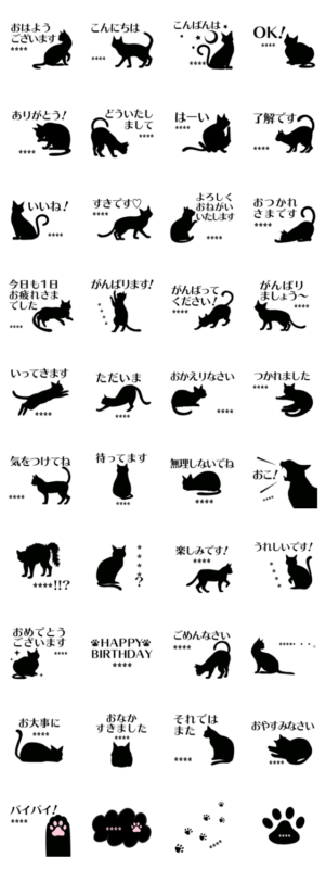 シンプル黒猫シルエットカスタムスタンプ スタンプ画像一覧