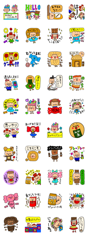 お菓子のイラストのスタンプ。かわいいものからシュールなものまで。