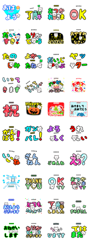 デカ文字こねこ♡日常語・敬語・イベント スタンプ画像一覧