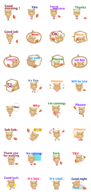 ラグビーくまさん 英語版 スタンプ画像一覧