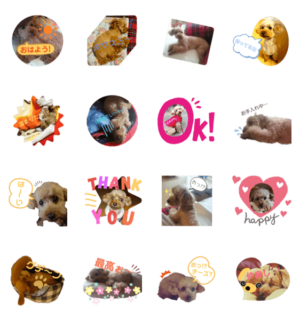 愛犬であるトイプーのスタンプです。小さいサイズでアップロードしたため 画像サイズを修正したバージョンです。 小さいサイズのものは販売停止しました。