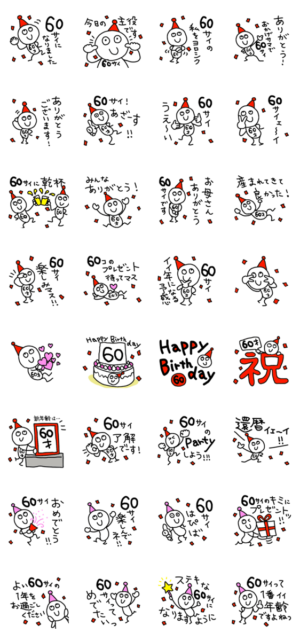 60歳の誕生日を祝う&祝われるスタンプ スタンプ情報