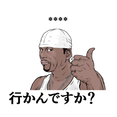 熊本弁のラッパーのカスタムスタンプです。名前や地名など好きな言葉を入れて送信することができます。