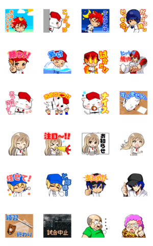 日常会話、あいさつ、お返事、応援、連絡まで色々使えるアニメスタンプ! お子様だけでなく、親御様にも役に立ちます!チームみんなでお使いください。【野球編】