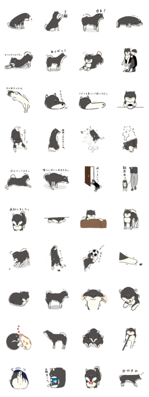 シンプルな柴犬たちのスタンプ。 黒柴バージョンです。湖中そう より発売