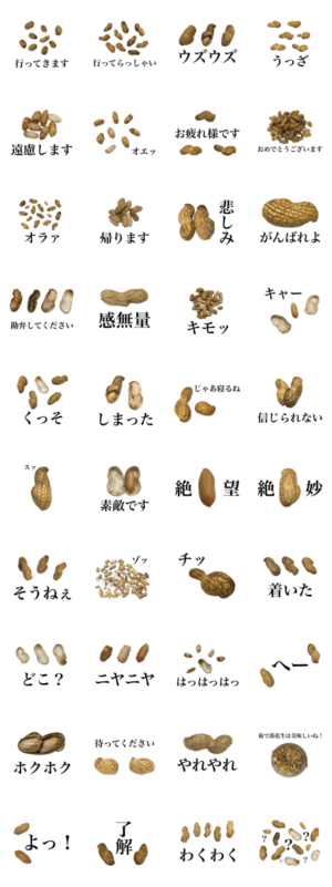 第一弾ピーナッツスタンプを千葉県産おおまさりで補う様なシリーズに仕上げています。言葉遣いに統一感なし。お土産にもぜひ。 原材料:落花生(おおまさり/千葉県産)ピーナッツ屋さん より発売