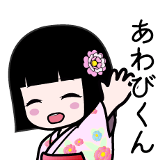 『あわびくん』用のよく使う言葉を詰め合わせた座敷童子のスタンプです。和服 着物 浴衣かがりひな より発売