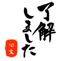 公文さん用真面目な筆文字のスタンプ。敬語丁寧語で仕事でもバンバン使える。判子(はんこ)付きで見た目も鮮やか!