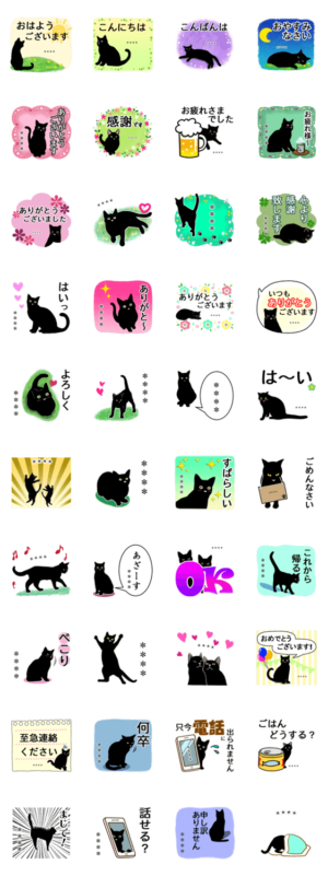 シンプル黒猫☆カスタムスタンプ スタンプ画像一覧