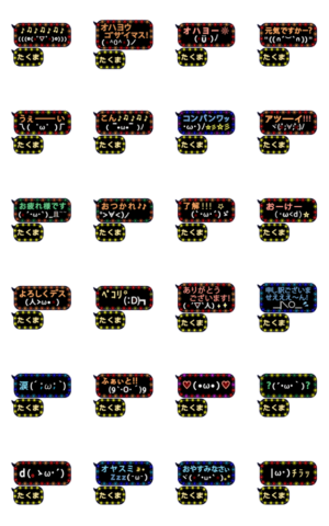 動く顔文字「たくま」の☆ふきだしイルミ スタンプ画像一覧