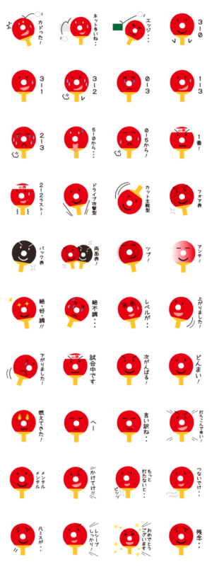 卓球好きには使い勝手のいいスタンプだと思います。皆様のピンポンライフにささかやな彩りを。NO PINGPONG, NO LIFE!