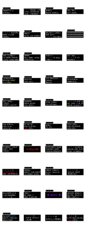 RPG風のゲームテキストウィンドウ スタンプ画像一覧