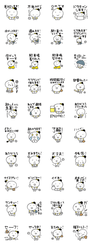 使える草野球 黒/白/黄色 スタンプ画像一覧