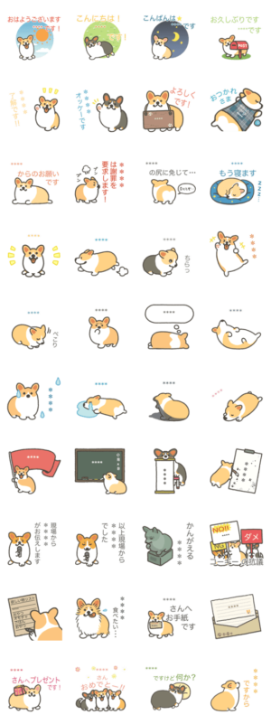 日常会話で使えるコーギーのカスタムスタンプです。名前やセリフを自由に入れて、お好みのアレンジでコギの成分をお楽しみください。