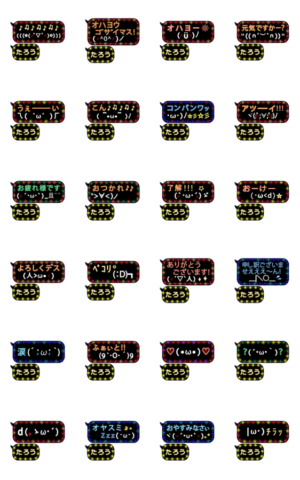 動く顔文字「たろう」の☆ふきだしイルミ スタンプ画像一覧
