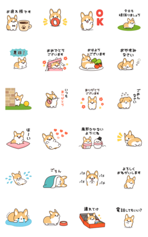 おしゃべりが大好きなやさしいコーギー犬のアニメーションスタンプ♪