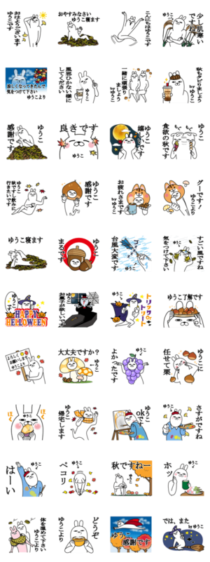 ゆうこが使うスタンプ敬語秋編。悠子,優子,祐子,由子,裕子,夕子,有子,佑子,結子,郁子,邑子,ユウコ,ゆう子などゆうこが使えるスタンプ