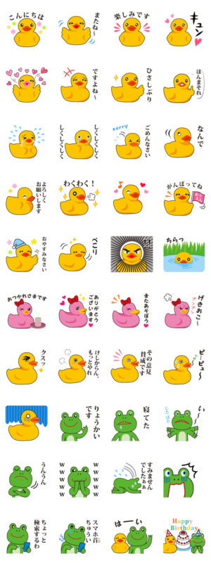 アヒルちゃんのほのぼのライフ!アヒルちゃんとカエル君のスタンプが第二弾になって登場!ちょっぴりシュールなほのぼのメンバーが、あなたのスタンプライフを彩ります!