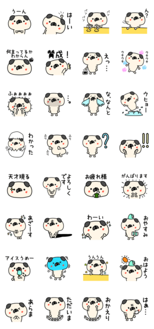 ゆるくてかわいい犬です。普段使いにどうぞ。絵文字もあります。type-E より発売