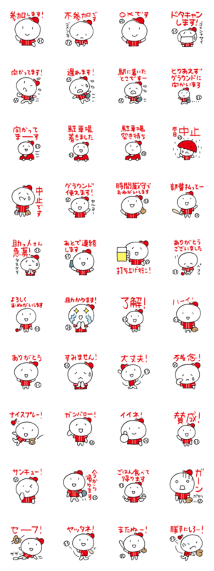 使える草野球 赤/赤/白線 スタンプ画像一覧