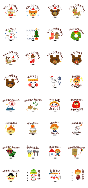 名前入り❤️毎年使えるクリスマスと年賀状 スタンプ画像一覧