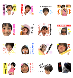子どもたちの変顔を利用したスタンプです。ちいぷら より発売