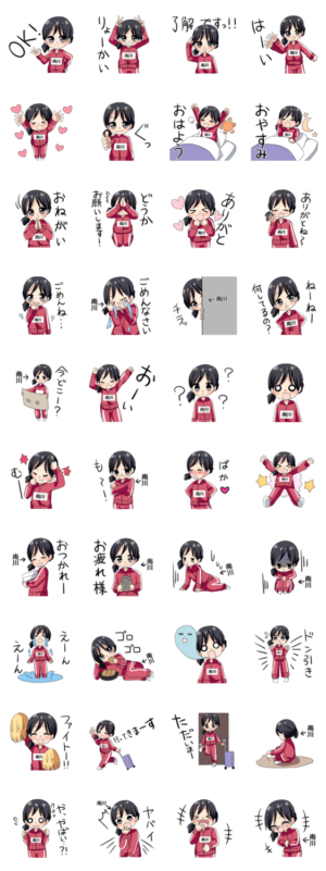 【南川】専用。ジャージ(エンジ、赤)を着た女の子。/かわいい/女子/友達/日常会話/【illustrated by misaki】セントセン(かわいい名前スタンプ) より発売