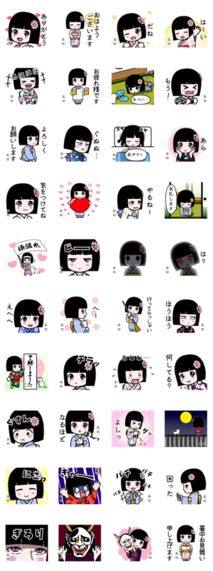 『エロ』用のよく使う言葉を詰め合わせた座敷童子のスタンプです。和服 着物 浴衣かがりひな より発売