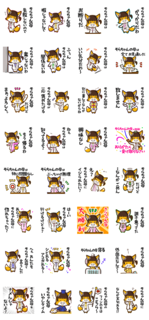 ゆっけ。が贈る【そらちゃんの母】用名前スタンプ06です。《ゆっけ。のアニぱ!》06「きつねのてんくー姉妹・姉てんこ」です。ゆっけ。のおみせ⭐️1F おなまえひろば⭐️ より発売