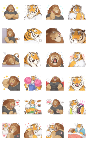 お茶目なライオンのライアンさんと優しい虎のラムちゃん。仲良しなふたりのスタンプです。 シンプルな文字なしバージョンも作りました!