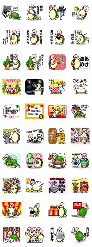 カメたんの年末年始スタンプのダウンロードはこちら↓