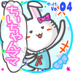 ゆっけ。が贈る【ちいちゃんママ】用名前スタンプ04です。《ゆっけ。のアニぱ!》04「ガールなうさぎちゃん」です。