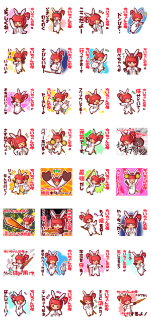 ゆっけ。が贈る【ちいちゃんの母】用名前スタンプ12です。《きぐるみじょし》01「うさぎなミコちゃん」と親友の「ガルうさ」です。