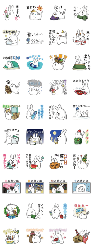 四季を満喫するうさぎのおもちとねこのちーちゃんのスタンプ。徳島ローカルフリーマガジンAWAP より発売