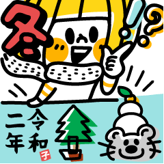 冬服・冬の帰省・冬の挨拶など冬の日常でよく使う言葉にゆるい敬語、クリスマスとお正月もパックになったちょっとお得なkarinのTHEポップボブガールの冬スタンプできました