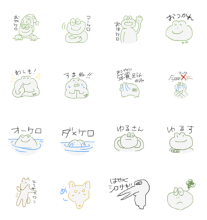 マーケロとカエルの「との」のスタンプ第2段 ともだちの犬のカルロスもいるよ武田キューピー より発売