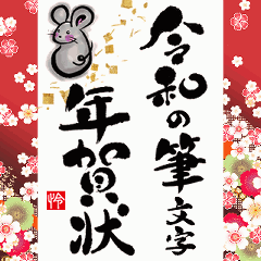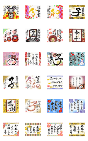 動く令和の筆文字年賀状(大人華やか2020子) スタンプ画像一覧