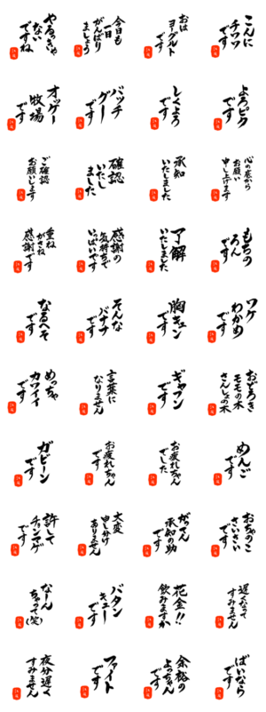 江尻さん用死語入り筆文字敬語 スタンプ画像一覧