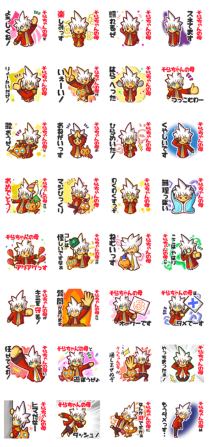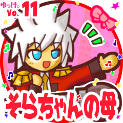 ゆっけ。が贈る【そらちゃんの母】用名前スタンプ11です。ゆっけ。のキャラクター「歌好きユーシャくん」と友達の「ヒロねこ」です。