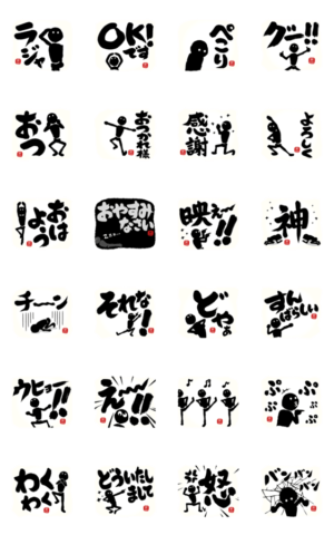 第11弾!めちゃ動くバージョン!!日本の文化の「筆文字」&アニメーションスタンプで伝えよう!!動く人と墨で書かれた文字で会話にインパクトを与えてくれるはず!!!!