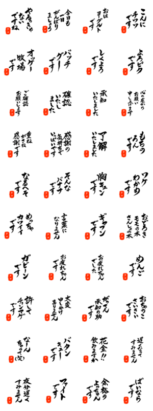 戸口さん用死語入り筆文字敬語 スタンプ画像一覧