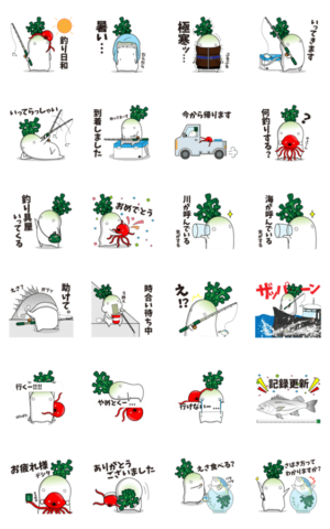 ゆるくカワイイ。でもシュールなMy大根の第7弾。釣行の際に使えるアングラー仕様で再登場。友達、家族、先輩、同僚、上司、トークのお返事にMy大根。PassWord Co.,Ltd より発売